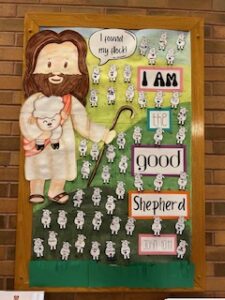Over the past several weeks, the 2nd and 8th grade students in our parish have been preparing for the sacraments of First Holy Eucharist and Confirmation by participating in the sacrament of reconciliation. It is a grace-filled time, not only for the students who are in formation, but also for their families. Even the bulletin board in our church vestibule celebrates this spiritual journey as we look upon the cut-out sheep who are in the gentle care of the Good Shepherd.